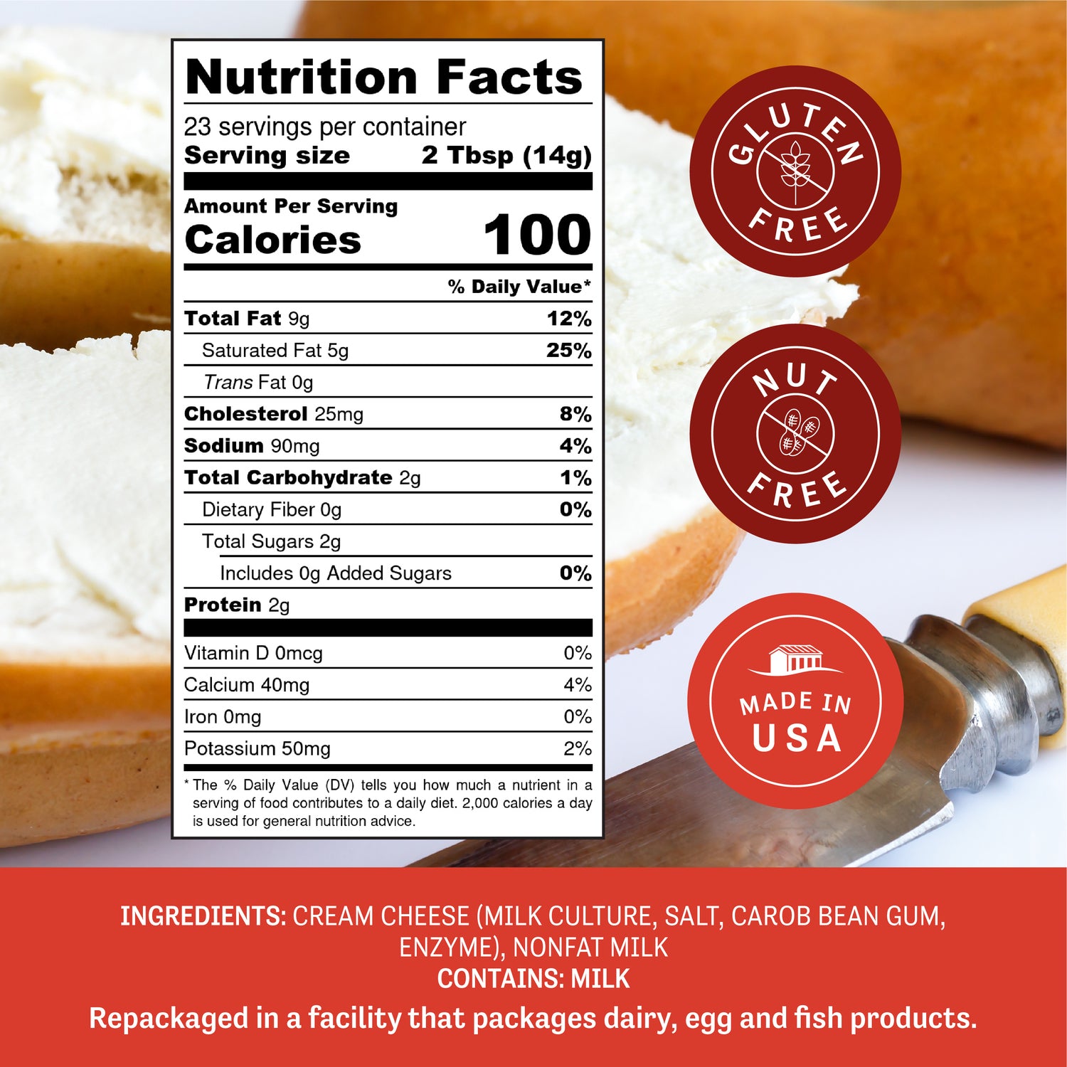 Cream Cheese (Milk, Culture, Salt, Carob Bean Gum, Enzyme), Nonfat Milk